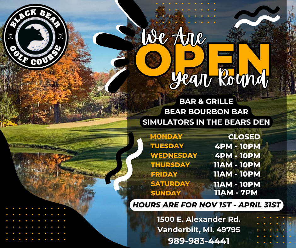 Black Bear Golf Course offers a unique & distinctive Northern Michigan assortment of Scottish links-style holes blended with traditional tree-lined holes, that will inspire you to mark your calendars for your next golf vacation and years to follow.